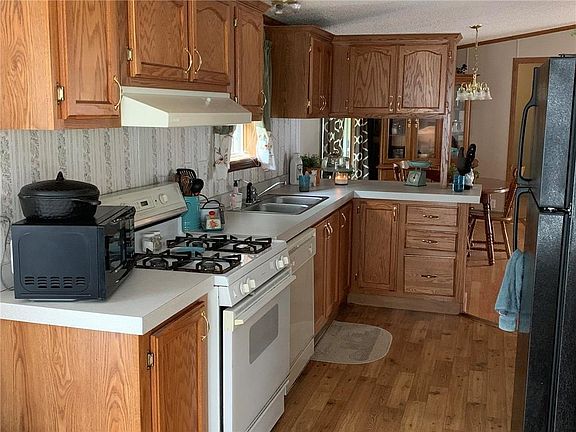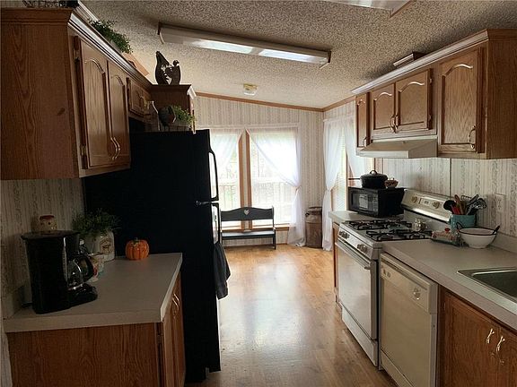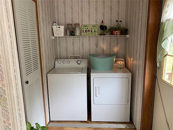 Nice manufactured home w/deck overlooking pond on 12 +/- acres. Home on full basement. Double vanity sink and walk-in closet in master. Detached 3 car garage with electricity.