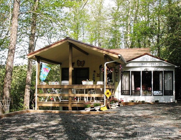 JUST REDUCED --- MOTIVATED SELLER -- Lots of privacy with this 3B/2B Canterbury Castle park model with spacious addition. New metal roof 2011. Circular driveway, covered deck, beautifully landscaped ... fully equipped kitchen including dishwasher. GREAT VALUE!House is being sold furnished with exceptions list. SELLER FINANCING AVAILABLE TO QUALIFIED BUYER. One-time Linville Land Harbor initiation fee of $4500.00. ANNUAL POA Dues of 2176.00 includes water/sewer, cable television, year-round road maintenance, garbage pickup, 24/7 Police, heated swimming pool (summer only), golf course, tennis courts, fishing, shuffleboard, hiking trails, planned activities and activity director. Close to Grandfather Mountain, Linville Falls and various winter activities such as skiing, tubing and ice skating.