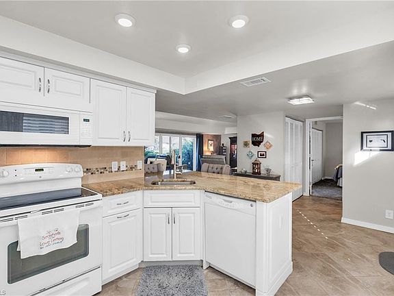Discover this beautiful move-in-ready first-floor end unit in the desirable bundled golf community of Glades Country Club. This charming condo offers a spacious, open layout with new carpet in the bedrooms, tile on a diagonal throughout the main areas, and an updated kitchen featuring raised panel cabinets, granite countertops, and a new microwave. Enjoy the luxury of a clawfoot tub in the guest bathroom, enhanced with a stunning stone accent wall, and a master bathroom with double sinks, and walk-in shower. Additional updates include a 2020 AC, a 2021 hot water heater, hurricane impact windows and doors, and a new electric panel for peace of mind. As a resident of Glades Golf & Country Club, enjoy the privilege of daily golf on two recently renovated courses designed by Gordon Lewis—the Pines, a par 70, and the Palmetto, a par 55—complete with new irrigation and grass as of 2018. Community amenities include 9 heated swimming pools, 6 tennis courts with new Har-Tru surfaces, and a very active pickle ball club with 12 courts. There are also 3 newly added bocce courts, a library, art room, golf pro shop, and learning center to enhance your lifestyle. The 19th Hole Restaurant & Bar and the main resort-style pool next to it offer the perfect spots for socializing and relaxing. HOA fees include bundled golf, water/sewer, cable TV, and high-speed internet, making this condo a perfect blend of luxury and recreation. Furniture is negotiable, so you can truly make this home your own and begin enjoying all that Naples has to offer today! Located just 10 minutes from the shops, dining, Naples Pier, Naples Zoo, Gulf Coast Mall, and the beautiful beaches of downtown Naples, this condo is your gateway to the best of Southwest Florida!