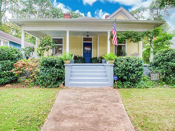 Beautiful East Atlanta Village 1911 Bungalow with 10ft+ceilings, hardwood floors throughout, central hallway, 3 fireplaces, 2 bedrooms, 1 full bath! Foyer and cozy open living room greet you as you enter from the amazing front porch. Large dining room easily accommodates a crowd. Master Bedroom and guest room off main hallway. Driveway parking, private fenced backyard with a patio perfect for entertaining. Parking space for 3 cars in driveway, and lots of additional parking via alley access with gated back yard. Premium East Atlanta location, quick walk to the Village!