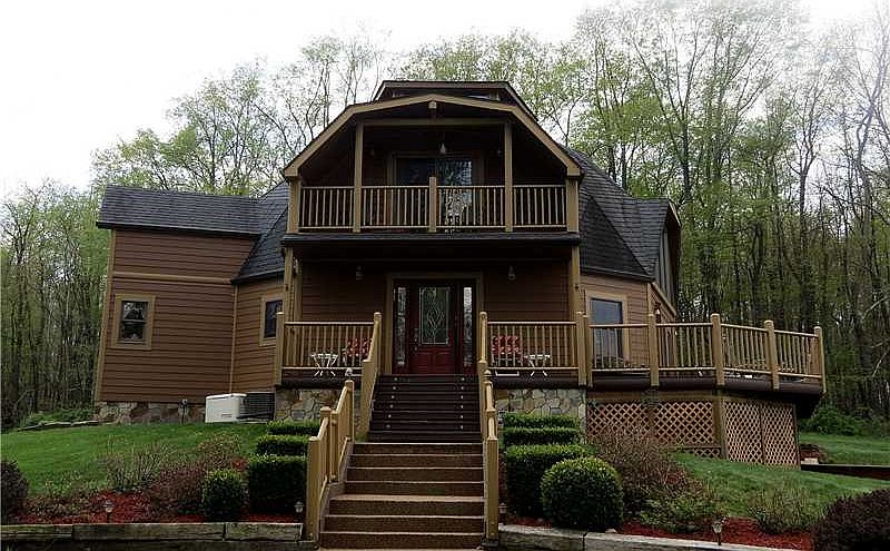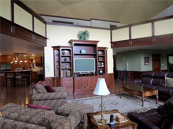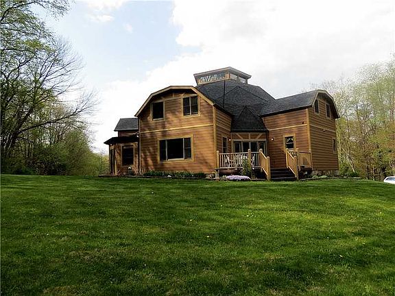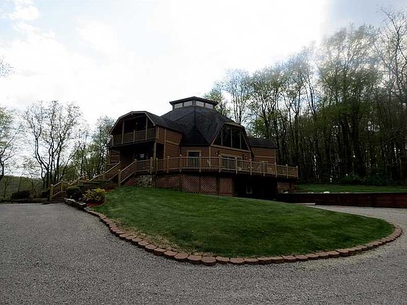 Rustic elegance describes this custom designed & built 3 bedroom 3.5 bath home which rests atop 9+ acres. Intricate details and inspired use of windows & ceiling heights compliment the 4147 sq. ft. free flowing floor plan. The Kitchen is well equipped with w/SS appliances, Corian counters, island with seating, pantry & breakfast nook. A banquet sized diningroom includes a built in buffet. The palatial great room has soaring ceilings, a cupola to allow air flow & lovely views of the neighboring horse farm. The Library/Den is rich in beautiful woodwork including built-in cabinets & shelving, wood laminate floors, crown molding, & cozy gas fireplace. Additional features include wood laminate floors with radiant heat throughout the home, beautiful woodwork including wainscoted & bead board walls, whole house vacuum system, security system, cedar closet, loads of storage, 2 decks and a balcony to enjoy wooded and scenic views. Superior construction with 2X6 fire retardant wood, Insulated Concrete Foundation Walls & Hardie Plank. This home is built to have a higher resistance to natural disasters, storms and wind. Due to its shape the home is resistant to heat & cold making it eco-friendly! A huge 3 car detached garage is a great space for the car enthusiast or make it your work shop! Don't let the uniqueness of this home make you hesitate - it truly feels & looks like home! Oil Gas & Mineral rights included in sale!