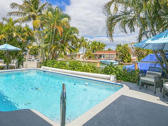Brand new listing alert!! Discover this recently remodeled home filled with tons of upgrades located in a multi-million dollar neighborhood! This home has everything you could possibly want! 3 bedroom 2.5 bathrooms boasting vaulted ceilings, ambient, recessed lighting, marble bathroom counter tops, granite kitchen counter tops, large pull-out pantry, plantation shutters, electric fireplace, impact glass windows/ doors throughout with hurricane shutters for double protection. Relax in your massage/aromatherapy shower-tub with led lights and music. Double level expansive lanai and sundeck with pool. Upper level featuring a fire pit and breakfast bar which is perfect for entertaining! Brand new pool heater, fenced in backyard and a 12,000 lb boat lift with a newer dock, artificial reef, and fluorescent lights for the ideal night time fisherman! This home has everything you could possibly want!