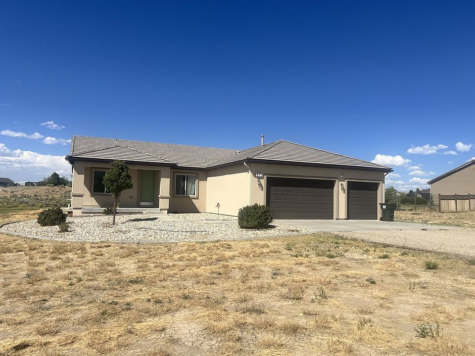 Welcome to this inviting 1,749 sq. ft. ranch-style rambler, a 3-bedroom, 2-bath home built in 2013 that blends modern comfort with a touch of country charm. The stucco exterior and durable cement roof sit on just over an acre, giving you privacy and room to enjoy the outdoors. Inside, the open kitchen is designed for gathering-offering generous counter space, plenty of cabinetry, and a nearly new gas stove, perfect for home-cooked meals. The home has been upgraded to natural gas for efficient, reliable energy.A spacious three-car garage provides room for vehicles, storage, or a workshop. The landscaped front yard is easy to care for with a drip system, while the covered back porch is the perfect spot to relax with morning coffee or host friends in the evening. Move-in ready and thoughtfully maintained, this home offers the comfort of modern living with the peaceful feel of country life.