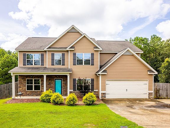 Spacious Smiths Station home that sits on over 1 acres in a cul-de-sac.The back yard has a gate at the back of the property so you can walk to the Smiths Station Sports Complex.This beautiful home features a formal living room & dining room (currently being used as barber shop), large family room with electric fireplace, and a stunning kitchen.The kitchen features granite countertops,an abundance of cabinet space,SS appliances,tile backsplash,& pantry.The first floor also has one bedroom & one full bathroom.Upstairs you will find an open area great for a second living room w/a closet for storage, there's also 2 nice sized bedrooms and a full bathroom.The laundry room is also upstairs. The large Primary bedroom has tray ceilings, an ensuite walk-in closet, and ensuite bathroom.The bathroom features a soaking tub with separate shower,& dual vanity.The back yard is like a private oasis w/ shade from mature trees,a beautiful deck surrounding the above ground pool,& covered back patio.