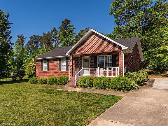 3-bedroom, 2-bath brick home has a NEW ROOF and sits on a 0.57-acre lot in Randleman. This 1,272 sq ft home features engineered hardwood floors throughout and a vaulted ceiling in the living room. Kitchen includes stainless steel appliances and opens to the main living area. The primary bedroom offers an ensuite bath. Enjoy outdoor space with a covered front porch and a backyard patio. Convenient layout and durable finishes in a quiet, established area.