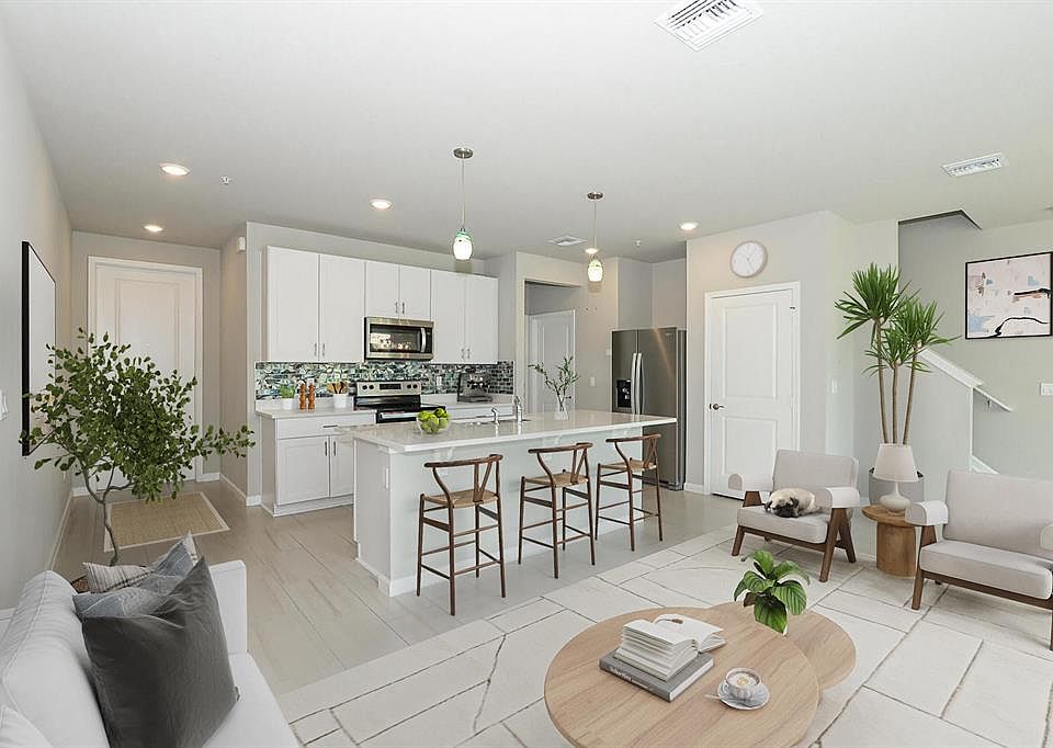 Open layout downstairs blends kitchen, dining, and living; upstairs loft adds flexibility for work or play. The primary suite is spacious with a private bath, while secondary bedrooms share a Jack-and-Jill design. All appliances convey, including washer/dryer and stainless kitchen package. Impact windows and energy-efficient construction offer comfort and peace of mind. Tidewater residents enjoy gated security, sidewalks, and a community pool--conveniently located on US-1 near shopping, dining, and beaches. Sandpiper model in Tidewater, right off Highway 1. This 3BR/2.5BA townhome includes a loft for a second living area, office, or flex space, plus a Jack-and-Jill bath. Quality upgrades include 8' interior doors, impact windows, spray-foam insulation, and ceiling fans in bedrooms. Kitchen with stainless appliances and island, washer/dryer included, and blinds on all windows. Two-car garage, gated entry, and community pool. Just 12 minutes to South Beach Park and less than 2 miles to Publix.