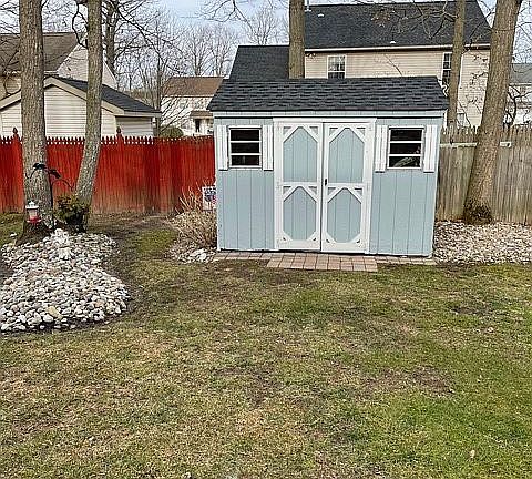 Absolutely beautiful 4 Bedroom and 2.5 Bath Colonial Style home in the Sapling Run Section of Watefrord Township. This home has been meticulously maintained inside and out and it shows at every turn. The home boasts hardwood flooring throughout most of the main floor, off the foyer is the partial bath and the foyer is also open to the large formal living room, a neutral decor throughout, an open floor plan, plantation shutters on the windows, a large basement that is the footprint of the home offering tons of storage space and could easily be finished, off the kitchen is a large dining room, a breakfast room that is open to the large Family room and top off the first floor with an updated kitchen that has granite countertops, a tile backsplash, a center island, white appliances, and a window over the sink that looks out to the backyard. The second floor offers 4 large bedrooms including the master bedroom, an updated hall bathroom, and the large master suite has his and her closets, and an updated master bath with a soaking tub, stall shower, and a double sink vanity with a new granite top. The exterior of this home offers maintenance free vinyl siding, a paved driveway leading to a 2-car garage, professional landscaping, a new roof with a 30-year timberline shingle, a covered front porch, white vinyl fencing in the front of the home, a large deck off the back that steps down to a paver patio, a fire pit area in the back left corner of the yard, a large shed for more storage, and all of this on a large fully fenced-in lot. Don't miss your opportunity to see this wonderful home!