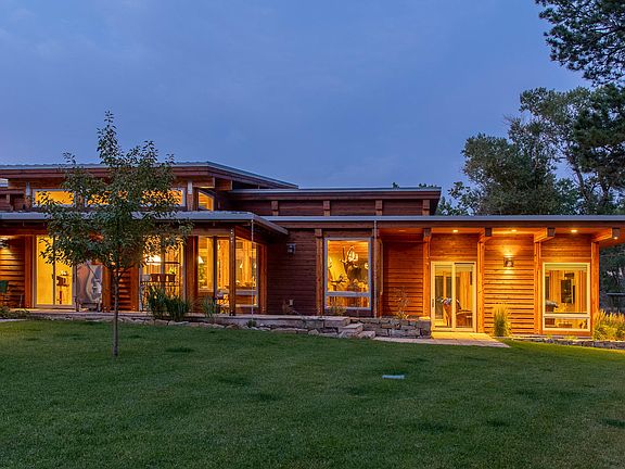 Sink into a blend of modern style and rugged nature in this expansive Wyoming estate. The unique lines of the roof pay homage to the surrounding landscape, while a gracious front entry welcomes you. Walls of windows frame blue skies, swaying pine, and aspen trees inviting you to relax on the incredible stone terrace. Cook, dine, play, or lounge while overlooking the cascading waters of North Piney Creek. Enjoy exploring more than 15 acres of rainbow trout-stocked ponds, private trails, creek frontage, and forest. Inside, rich hardwoods and warm accents bring intimacy to open plan living. Your master retreat is the ultimate escape. Refresh in a spa-worthy bath for him and her. All measurements are approximate.