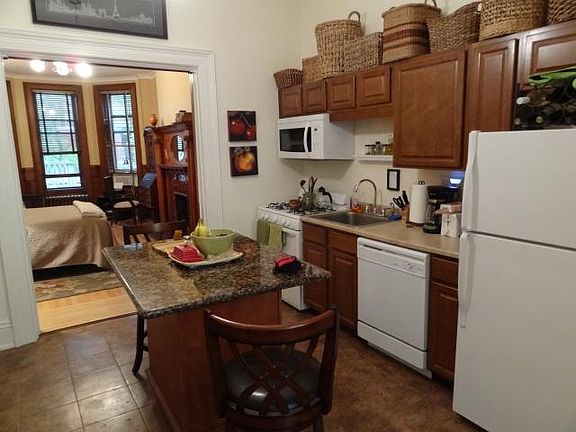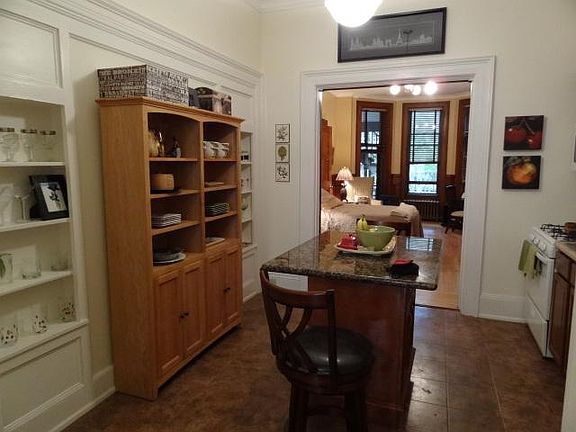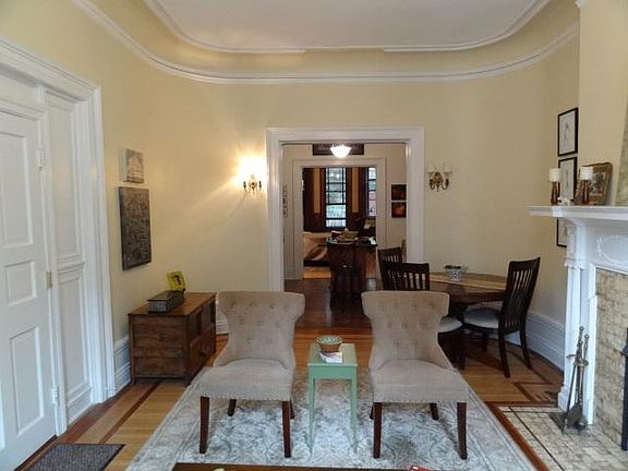 Large first floor with private deck. Historic Victorian Mansion with lots of original detail. High ceilings, hardwood floors. Newer kitchen with dishwasher and microwave. Large completely tiled bathroom with tub and shower. Very large bedroom with walk-in closet. Washer/Dryer on premises. Across the street from Albany's Washington Park. Lower rent for one person. heat, hot water, trash removal and cooking gas included