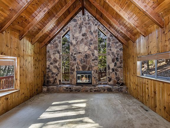 Open beamed cathedral ceilings and so much natural real wood in this super cabin-y, lodge-y mountain home. Only minutes from the Lake Arrowhead Village, yet sitting high on a hill with a sense of privacy. Expansive entertaining deck wraps across the entire front and around the corner on one side, too. One bedroom and bath on the main. Two other bedrooms and a bath are upstairs. Open and bright floorplan. This is the home that really gives you that warm and cozy feel like you're really in the mountains!