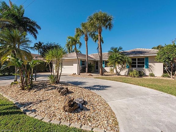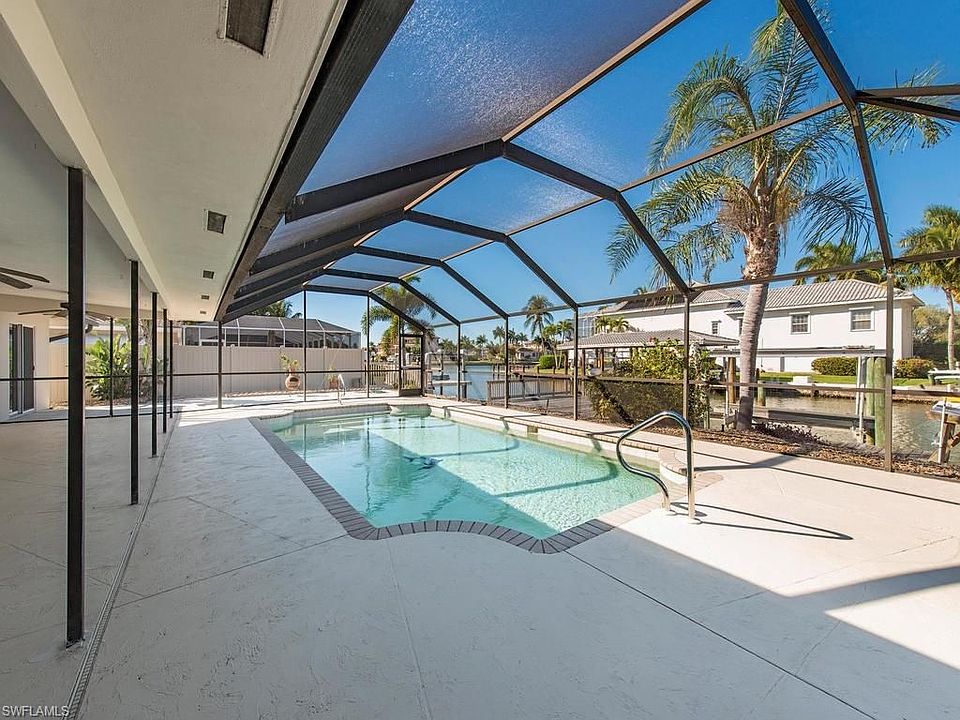 H.11657 - Outstanding water views with an added bonus of wide bay views to the West! Gulf access 4/3 residence has living area of 1,965 sq ft and 2,865 total area which includes an oversized double car garage and tropical heated pool area complete with boat dock and 12,000 lb lift. Substantial guest suite wing boasts a living room, mini kitchen, one bedroom and full bathroom! Perfect for overflow guests and family or vacation rentals. $50,000 in recent upgrades. New stainless appliances. 2 zone new high efficiency A/C units w/ 10 year warranty. New fencing, pool pump and motor. This home was completely rewired in 2010. Vanderbilt Beach Estates is a coastal boating community conveniently located close to the beach, The Ritz, LaPlaya a private beach and golf club, LA fitness, Mercato and a plethora of fine dining and shopping! The ultimate in boating from your own back yard!