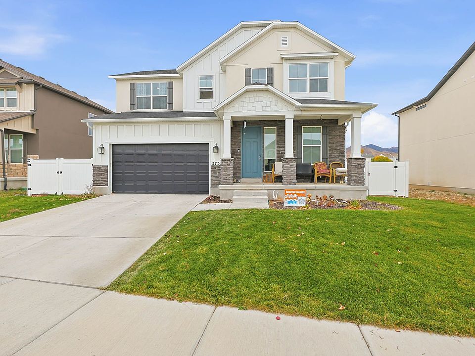 Bright and beautiful 4 bed, 2.5 bath home in a newer neighborhood in NW Tooele. Hard surface floors throughout except carpeted bedrooms and upstairs hall. Family room TV included! New refrigerator, gas stove, automatic blinds throughout the first floor. Laundry room is conveniently located upstairs. Upstairs has standard blinds. Washer and dryer can stay if needed, please inquire. Backyard has patio and turf area, fully fenced. The rest of the yard to be finished next Summer 2026. Primary bathroom has separate tub and shower. 1 year lease. $3,000/mo rent. $1800 Security Deposit. No cats. Up to 2 dogs allowed with $200 pet deposit and $75 per dog, per month pet rent. Owner takes care of winterizing sprinklers and getting them running in the Spring. Close to shopping and parks. 30 minute drive to SLC.