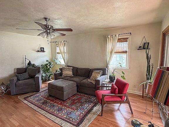 A charming 3-bedroom, 2-bathroom home in the heart of Sheridan. Its unique architecture, hardwood floors, skylights, and built-in features create a welcoming, peaceful atmosphere full of character. Large, grid-style windows wrap the front corners of the house, giving it a distinctive street presence while bringing in natural light and warmth year-round. The versatile layout includes additional square footage, ideal for a sunroom, home office, or kids' playroom. The basement is suitable for a studio rental or guest space, complete with its own bathroom, compact kitchen, and private side entrance. A partially fenced backyard is surrounded by mature lilac bushes that offer privacy, and the long driveway provides off-street parking for up to three cars, leading to a garage for additional storage or covered parking. A new furnace and water heater were installed in 2024. Outdoor lovers will appreciate the walking and biking path just one block away, with easy access to Little Goose Creek, Washington Park, Emerson Park, and South Park. Located in a friendly neighborhood, this home is also close to Coffeen Elementary School, Ridley’s grocery store, and just a few blocks from Main Street and downtown Sheridan.