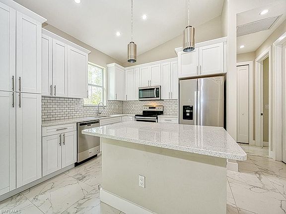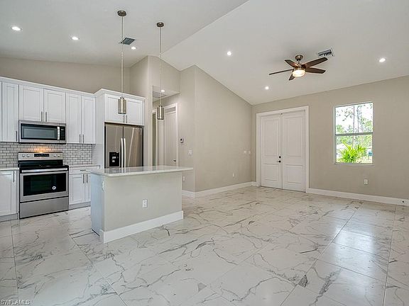 ONE OF THE LOWEST PRICED BRAND NEW HOMES being built in desirable Golden Gate Estates on over an acre of land! Open floor plan features 3 bedrooms, 2 bath, 2 car garage, and upgrades to include solid wood soft close cabinetry, 24x48 tile throughout, granite countertops in kitchen and bathrooms, stainless steel appliances, & IMPACT RESISTANT windows and doors throughout!!! The master bedroom boasts a tray ceiling and recessed lighting. Master bath features a walk-in shower with glass doors and double vanity. Entire home features recessed lighting and fans in living and bedrooms. Laundry room inside home. Gutters throughout and auto sprinkler system. Garage apron, sidewalk, entry and lanai are brick pavers and the remainder of the driveway will be asphalt. Great Location & NO HOA FEES!! USDA eligible area! Can be fully complete in 4-6 months and buyer can still make selections!