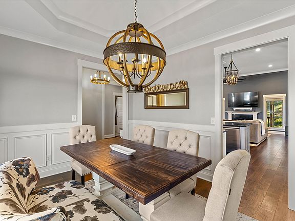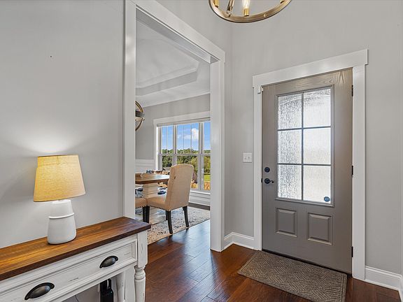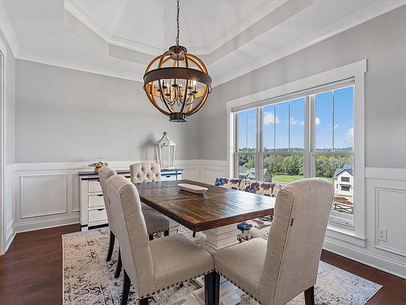 12-foot ceilings, elegant crown moldings and gas fireplace create an atmosphere of sophistication and warmth in the main living spaces. The home's heart is the kitchen featuring granite countertops with Samsung and Frigidaire appliances. In addition to tranquil farmland and wooded views, the evening sunsets from the large dining room windows will provide a picturesque view, the perfect backdrop for memorable dinners and game nights. For those working from home, the upstairs is easily used as a home office, rec room, theatre, gym or a 4th bedroom with ensuite. The Master on main is a retreat, boasting an extra-large walk-in shower, soaking tub, and walk-in closet. The newly screened-in deck also provides for relaxation in privacy.