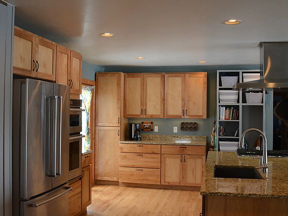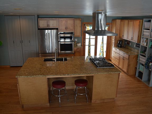 No Covenants. This ranch style home is on just under an acre of land (0.76 ac). It features 5 bedrooms, 3 bath (one bath and bedroom is handicap accessible)2 car attached garage. The kitchen was fully remodeled with granite counter tops, stainless steel appliances including wall oven, convection/microwave, and a cook top. The kitchen is open to the living and dining room with a large wood stove. A large deck just out the back door looks out on to a beautiful green lawn and a fenced pasture for animals (chickens, horses or others). Their is a large shed for toys in the back pasture, plus a garden shed in the side yard. The drive way is paved, large and ideal for turning around trailers and toys. The large insulated, heated shop can store toys and equipment, and on the side of the shop is enough room to plug in an RV. This home is ideal to work or play out of, come check it out.