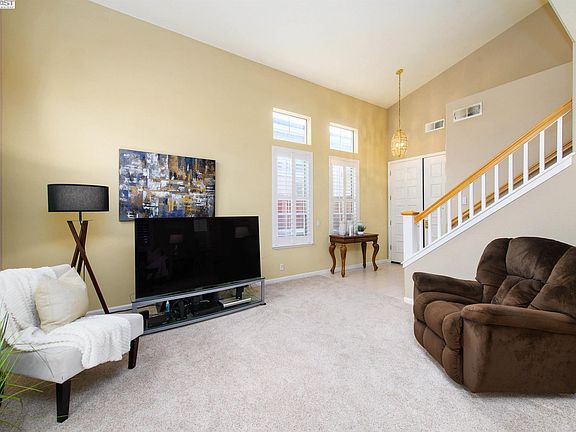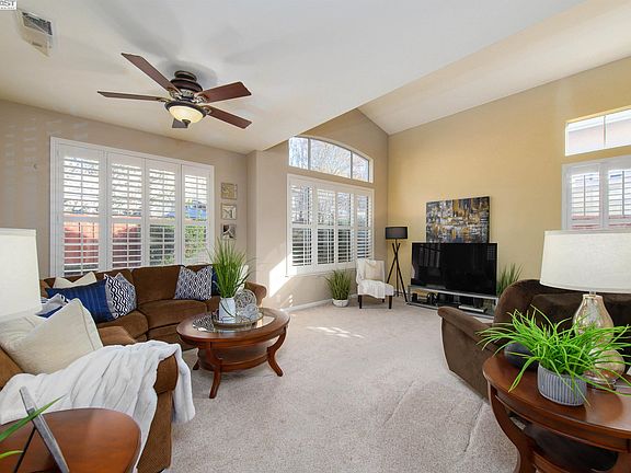 Enjoy California contemporary living in this Stoneridge Orchards home with fresh exterior and low-maintenance landscaped lot. Move right in to enjoy dramatic vaulted ceilings, beautiful hardwood floors, cozy fireplace, updated kitchen appliances, high-end shutters and abundant natural light. With 4 upper-level bedrooms, the primary suite features double vanities, soaking tub and large walk-in closet. No HOA in a tranquil neighborhood, just a stone's throw from historic downtown Pleasanton and top-rated schools and parks.