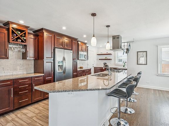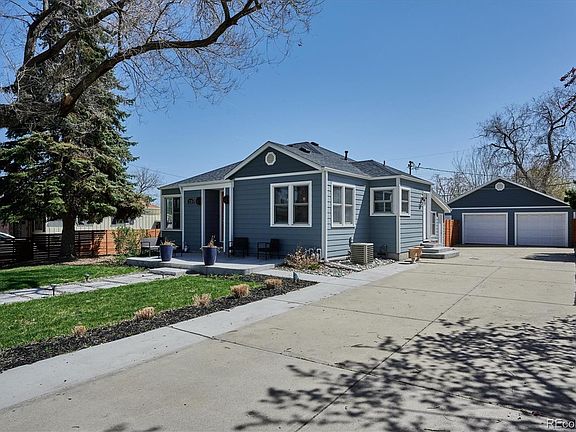 Welcome to your premium Wheat Ridge ranch, where classic charm meets modern style. The floorplan is open and bright, perfect for entertaining. The kitchen is astounding with endless cherry wood cabinets, a large granite island, gas range, decorative hood and vast countertop space. In addition, you’ll find a mini fridge, built-in glass hangers, wine bottle storage and floating shelves. The main bathroom has a walk-in shower with seat, custom lighting, dual sink vanity, and high-end tiling. Off the rear of the home is a vaulted well lit sunroom with designated a/c and heat, skylights, and 3 french doors opening up to a concrete patio oasis, gravel fire-pit area and private backyard. The basement has its own divided entry way and is partially finished with a large family room with egress window, bedroom and a full remodeled bathroom. The garage is an oversized two-car at the end of a long driveway, perfect for boat or RV parking. The electrical panel, roof, James Hardie cement board siding, and exterior paint are all newer. It truly has all been done for you! Premium location just minutes by bike or walk to Tennyson Street, Highlands Square, Sloans Lake, Edgewater and Downtown Denver. Whether you’re relaxing on the front porch under the 100 year old tree, in the backyard surrounded by lush landscaping, or entertaining in this one of a kind kitchen, you’ll feel right at home in this rare find Wheat Ridge charmer.