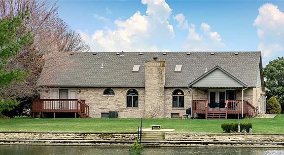 Don't miss out on this rare opportunity to own a water font home in Meadowbruck Lake Estates. This spacious custom 3 bed, 3 bath home boasts a full brick exterior with Anderson windows and french doors offering a beautiful view of the lake from the inside, while providing abundant natural light throughout. The newer Trane hi-efficiency furnace and A/C will keep you cozy inside year round. Two decks overlooking the backyard (one covered) provide a place to relax and take it all in. The entire lake front has been professionally landscaped with a block retaining wall and sidewalk along with a lakeside concrete patio. The stocked lake offers fishing for Bass and other species along with kayaking and swimming. The in ground sprinkler system keeps the grass green and lush all summer. The full unfinished basement has a bath roughed in and offers tremendous storage space or room to add the family or rec room of your dreams.