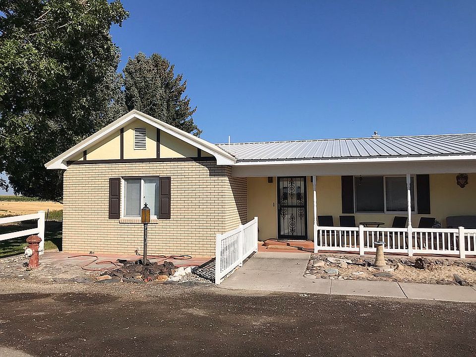This peaceful country home is tucked away in a quiet neighborhood with easy access to HWY 93. It sits on 5.46 acres with fenced irrigated pasture, mature landscaping, perennial flowerbeds, vegetable garden, fruit trees, and an aspen grove with fire pit next to seasonal running water. It has central heating and air, vaulted ceiling, stone fireplace, sun room, and a gardening shed. Carpets and kitchen countertops need updated. Very solid brick home. Twin Falls Canal Company water shares!