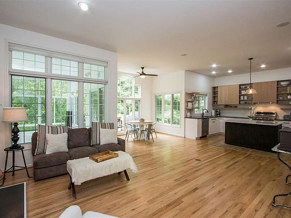 This contemporary country home with clean lines, soaring ceilings, and bright rooms, is situated on a 1.6 wooded lot on a cul-de-sac. The current owner converted this 1995 brick ranch into a modern family's dream, starting with refinished floors, new carpet and fresh paint the transformation began. Then they updated the kitchen with new alder cabinets, quartz countertops and new appliances. The eat-in kitchen leads to an amazing four-season room with deck, and the formal living/dining area have amazing floor to ceiling windows and a great view of the woods. It exudes nature. The large master suite was converted to a retreat by adding a walk-in shower, jetted tub, double vanities, and subway tile. The extra-large closet is another great feature. The lower level has a full walkout with a large recreation room, three large bedrooms, and a full bath. The over-sized three-car garage is another advantage of this great home, located just minutes from Downtown, trails, shopping, and the interstate. Call for a private showing