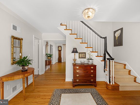 Set on nearly one-third of an acre, 3730 Cardiff Road is a beautifully maintained Brick Colonial residence, tucked away on a quiet cul-de-sac on one of the prettiest streets in The Hamlet, offering a serene, wooded setting while providing easy access to all that Chevy Chase and Bethesda have to offer. Boasting 5 bedrooms, 4 full bathrooms, and 2 half baths, this gracious home features sun-filled living spaces, inviting interiors, and a thoughtful floor plan designed for everyday living and entertaining. The spacious table space kitchen flows seamlessly into a cozy family room and dining room with access to an oversized deck, perfect for alfresco dining. The main level includes a large living room with a wood-burning fireplace, an attached sunroom, and a richly paneled library/office with custom built-ins and a gas fireplace. A powder room completes this level. Upstairs, four generous-sized bedrooms, including a serene primary suite with an updated full bath, along with a Jack-and-Jill bathroom featuring dual water closets. The finished attic above provides generous storage and versatile space for work or a potential bedroom. The walk-out lower level boasts a large recreation room with a billiards area, a separate laundry room, powder room, and a private guest suite with a full bath and ample closet space. An attached two-car garage on the main level offers added convenience. With mature landscaping, exceptional curb appeal, and a location that blends tranquility with accessibility, 3730 Cardiff Road presents an unparalleled opportunity to own a forever home in one of Chevy Chase’s most desirable neighborhoods.