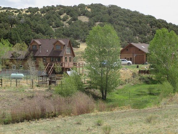 A Rustic Off Grid Horse Property on 75 acres of pasture with pond, natural springs and big, majestic Sangre De Cristo Mountain views. Recent home improvements include new roof on home, new solar batteries, and fresh paint on the decks. Equestrians will enjoy the fenced pastures and large barn with heated tack room, power, water, a large covered loafing shed. and the riding arena. A large deck wraps around from front to back of this charming log house. You are welcomed inside to an open kitchen, dining, and living space. The home has 3 bedrooms and the master bedroom can be located either on the main level or downstairs. Downstairs features a bedroom and living area with it's own entrance and a large master bath with a walk-in tile shower and double vanities. On the top level of the home are 2 additional bedrooms. The home has a heated 2 car attached garage. This home offers self sufficiency with solar power and back up generator. A pretty setting with aspen groves, pine trees, open meadows and the most amazing mountain views. Conveniently located only 3 miles off highway 69 and 17 miles from the town of Westcliffe.