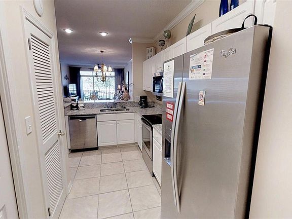 Recently updated and tastefully decorated lake front condo near golfing, dining, shopping, beach express & more! Unit is sold furnished with the exception of a few items. The unit features tile throughout the living area and kitchen, granite counter tops, stainless steel appliances, spacious guest bedroom with walk-through vanity area to full guest bathroom, lake front master bedroom & living room w/ access to beautiful views from the screened balcony!