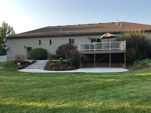 Beautiful home in highly sought after neighborhood in Rigby. Kitchen and bathrooms feature custom knotty alder cabinets with lots of storage and large kitchen island counter. Santa Fe texture throughout and rubbed bronze fixtures. Master bedroom with tray ceiling and bathroom with large garden tub and double head shower. Large laundry room with built in desk and cabinets for any crafter. Fully finished basement with cozy fireplace and large theatre/play room, bedrooms and craft room. 16 x 16 trex deck overlooks large finished yard, mature trees, landscaping, fire pit, garden spot and privacy vinyl fencing. 3 car garage with lots of room for storage and space to park recreational toys. Located 2 blocks from elementary and middle school and 1 mile from high school.