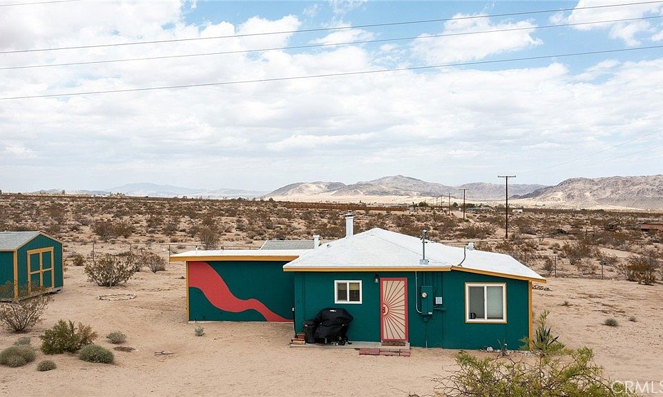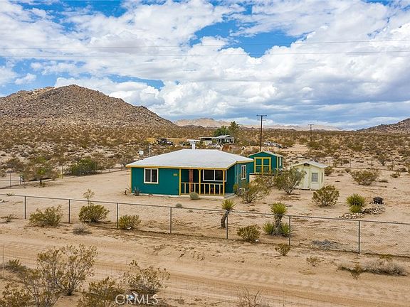 HOUSE OF YOUR DREAMS: Market conditions got you down? The jewel is a pick-me-up! Reasonable price-point, especially in terms of current interest rates. Tastefully remodeled with understated elegance. New, hand-crafted ceiling in living room and kitchen, new tiles to ceiling in custom shower and updated bathroom, new high-quality flooring, new 220amp electrical panel, new on-demand water-heater, new double-pane windows throughout, new ductless mini-split AC/Heater, new light-blocking blinds. Two freestanding sheds – the first, a newly built TUFF SHED for storage or a modest exercise room (present use), studio, office, etc. – and the second, an authentic vintage bunk house with an old school bunk bed built into the wall just waiting to be refurbished for your friends. Fantastic front porch for protection from the sun and the wind and the perfect place for a morning tea or evening drink. Wide Open Country – where Landers meets Johnson Valley. Vast, sublime views to the northeast of the distant desert below from the heights on which the house stands up on a mesa. Thousands of acres of government-owned land to the west, including boulders within walking distance of the house – your own veritable wilderness only one parcel away to all the hiking, biking and exploring you can endure. If considering relocating from the city as most of us living here have, you still have the option of racing into the city on spontaneous missions, but with the security of your own affordable homestead to come back to and a solid community to boot. Despite its remote location, there are neighbors for security and it’s only a short drive to several local, national and internationally known spots, including the glorious gourmet La Copine, Giant Rock for intergalactic travel (google it), The Integratron – built from “telepathic directions from extraterrestrials” (check their website for veracity), the locally famous $5 Pizza, the Giant Rock Meeting Room for live music and dining, along with local staples like Hero’s Market with gas, a full grocery store, meat department and even a diner. Fully supported community with a great cross section of locals, retirees, entertainment industry refugees and more. The distant Goat Mountain stands as the iconic landmark of Landers, but this far out north you make your own rules. Come join the band. (Furnishings are not included.)