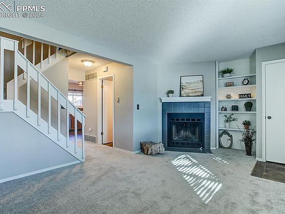 Beautifully Maintained Two Story Townhome Located In Desirable Village Seven. Home Boasts Kitchen Appliances, Washer, Dryer, New Carpet & New Custom Interior Paint. Spacious Livingroom Has A Cozy Wood Burning Fireplace For Those Cold Winter Evenings. The Kitchen Walks-Out To A Wood Deck That Has Amazing Mountain Views. Half Bath & Laundry Are Smartly Located On The Main Level. Master Bedroom & Secondary Bedroom Are Both Conveniently Located On The Upper Level, As Well As A Full Bath. The Covered Carport Is Located Directly Under The Deck. Location Is Convenient To Peterson AFB, D11Schools, Shopping, Restaurants, Neighborhood Parks & Provides Easy Access To The Powers Corridor.