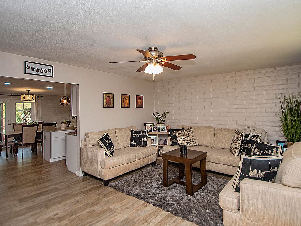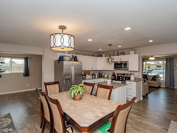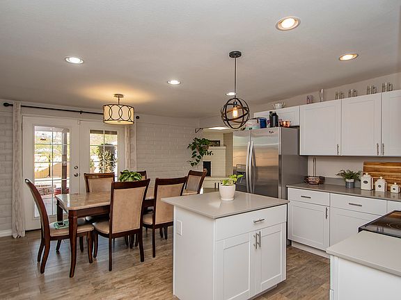 Spectacular masonry home in a quiet cul-de-sac. Spacious floor plan with wood looking cramic tile flooring. Newer carpet in the bedrooms. Large family room features brick fire place off kitchen for easy entertaining. Kitchen features newer kitchen cabinets, island offering plenty of storage, quartz counter-tops with under-mount sink and stainless steel appliances. Brushed Nickel light fixtures, celing fans throughtout. Dual pane windows throughout and French doors that will take you to the large back yard with a fire pit, fruit trees, storage shed and increadible mountain views. 2-10 Home Warranty included for 1 year.