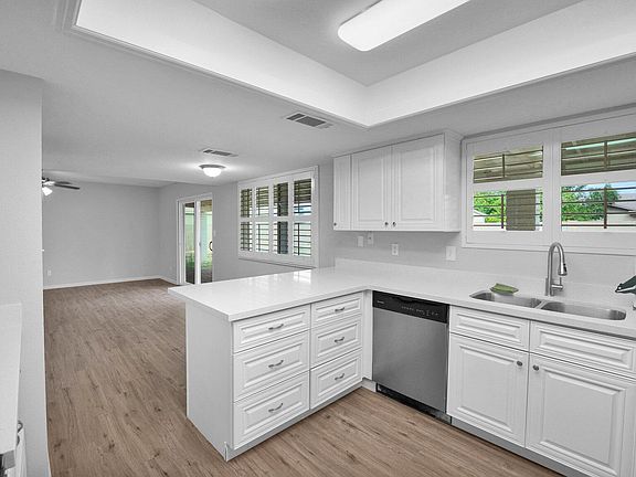 This newly updated 3 bedroom, 2 bath, 1624 sq ft home is ready to move in today. Updated kitchen with white cabinets, quartz countertops and stainless steel appliances. Wood look LVP flooring throughout and plantation shutters add to the appeal of this great property. Bathrooms are updated. The back yard is huge and features a large covered patio complete with pavers. New roof and new AC system in 2023. This fabulous property could be your next ''new to you'' home!