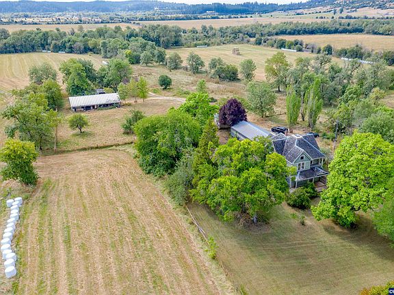 A Vintage home, along the covered bridge scenic loop, located on 43.10AC of flat usable land is ready to be revived by its new owners!This home was built in 1912 & has retained a lot of its original beauty!3bed, 2bath, 1737SF.Grand entryway that leads to the library, formal dining space & LR.This home features a pool room.The pool and hot tub are not functioning, buyer to complete due diligence. Multi large outbuildings - a shop, large barn-storage space.Fenced & ready for farming,currently leased for hay!