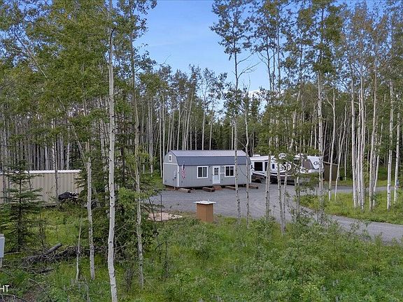 Kenai Peninsula recreation camp.Have your very own recreation retreat in beautiful Sterling Alaska. The property has been groomed and made into an ideal spot to retire after a long day of fishing & exploring. The aspen tree backdrop is outlined with a circular gravel driveway. This property includes a Sterling Supply built cabin with vinyl windows, sheet rocked walls, 200 amp electrical service, cabin is wired, Toyo heater, 2 upper loft areas, refrigerator, stove & metal roof. You also get a Keystone 39' Cambridge fifth wheel travel trailer in very good condition. Trailer has 4 slide outs, 2 air conditioning units, fireplace, surround sound, granite counter tops, electric retractable awning, high living room with ceiling fan, two flat screen tv's, side by side double fridge, 5500 Onan generator,central vacuum, solid maple cabinets & more. Property has a new 40ft conex ideal for securing and storing your gear throughout the season. Conex is large enough to store atv. There is currently a dedicated area currently used as a fish cleaning station. Addition cleared pads with campfire rings perfect for guest to set camp. Well & septic are in. Well was installed 2023. RV septic hookups in place, 2 RV plug in outlets. Tool shed & out house. Just 5 mi from Bings Landing, 7 miles from Skelak Lake western entrance, 17 miles to Jim's Landing, 18 miles to Fred Meyers, 5 Mi to downtown Sterling and three bears Borough maintained road to access the property.