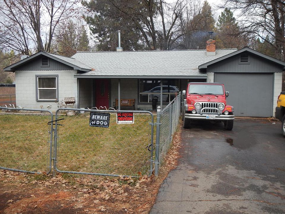 On a corner lot. 2 bedroom 1 bath block home. New roof in 2017 and newer vinyl double pane windows. One car garage, breezeway from garage to shop. There are two storage sheds. The property has cyclone fenced front and back yards.