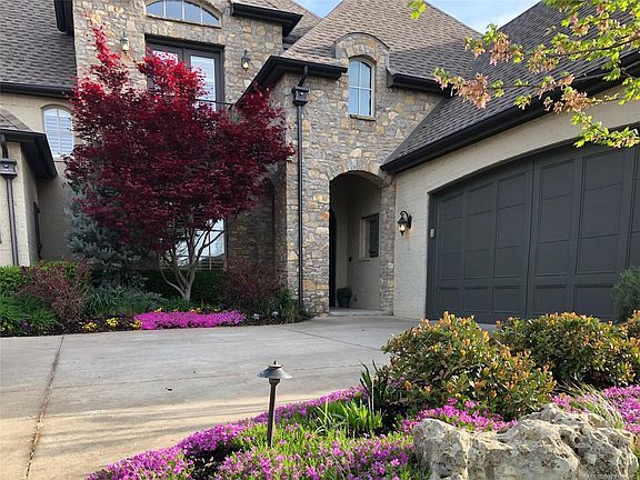 This Wind River Scissortail home boasts 5 Bedroom 4.5 bath and 3 car garage. Huge master closet that connects to oversized laundry room. Home could easily be made into a separate In-Law suite with its own garage, entrance living, bath, and patio! 2009 Hollinger Parade of Home Model w/beams & bookshelves. Great entertaining home with living AND TV room down, plus game room upstairs w/ French doors to overlook living. Gourmet Kit, huge 9 ft island with 3 in granite & double ovens. Sought after Jenks Southeast ! 2 fireplaces. Prof. Landscaped with lighting and water feature! House wired with indoor and outdoor sound system. 2nd living off of main could be used an office, tv room, playroom. etc. Gated! Gorgeous Ponds, fishing, sidewalks and Walking trails. New Carpet downstairs & Hand Scraped Hardwoods Flooring. Very Active HOA with tons of events for homeowners, like Easter egg hunts, Santa Visits, Fall Festivals, back to school parties, bunco, supper club, and seasonal events for adults. Quick Access to the Riverside and HWY 169/Creek. Sellers are Motivated, so come make those offers!