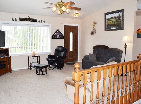 WOW, What a space for the money! Beautiful 1 acre lot with firepit, waterfall & pond, huge shop and shed. An RV parking pad with water, sewer & power hookups, and a lovely deck off the dining room. Home built in 2005 has a great floorplan with open kitchen, large dining room master bedroom & spa tub, and laundry room all on main floor. Basement is unfinished but has foam block insulation, framed walls, dual water heaters, plumbed for bathroom, storage areas and shop ready to make your own. Separate stairs to the garage as well.