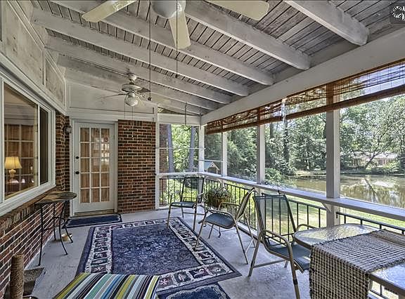 Charming waterfront home 1 level; lg screen porch overlooks 138' private pond;both formals + spacious open den w/cathedral ceilings and FP; marble foyer; updated kitchen, hardwood floors, solid surface counters, gas cooktop, huge butlers pantry; many replacement windows; walk up attic; LG front load washer/dryer & stainless fridge stay; Home pest bonded.Built in 1969 per tax records. House & lot high & dry, no damage from recent floods or from pond in back