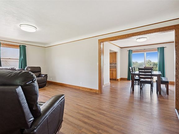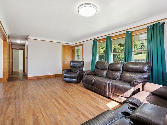 Don't miss this in-town acreage! The view from the maintenance free deck and stone patio overlooks better than an acre and half yard where the deer play. This home features 3 bedrooms and a full bath on the main floor, a galley style kitchen, and a separate dining area. Newer vinyl plank floors in the kitchen, dining, living rooms and hallway, and some hardwood flooring in the bedrooms. Downstairs you'll find a huge lower level bedroom off the walk-out family room, another full bathroom, and laundry room. The front yard is fenced for the kids and pets to play safely. An oversized 2-car garage and additional shed provide ample storage space.