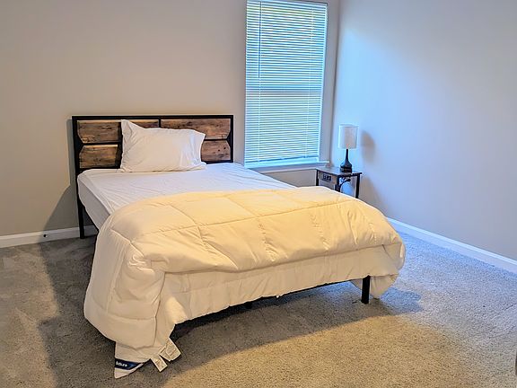 1 bedroom on main level living area with shared bath. Flexible lease options are available home is fully furnished with fully stocked kitchen, beds and common area amenities. background check, employment verification and minimum credit scores apply. all utilities including WiFi are included with monthly rent. 1 month security deposit required. no showings will be done without an a completed application. Absolutely no smoking allowed. due to the nature of shared living, overnight guests aren't allowed without prior notice given and permission. Common areas are video monitored for everyone's safety.