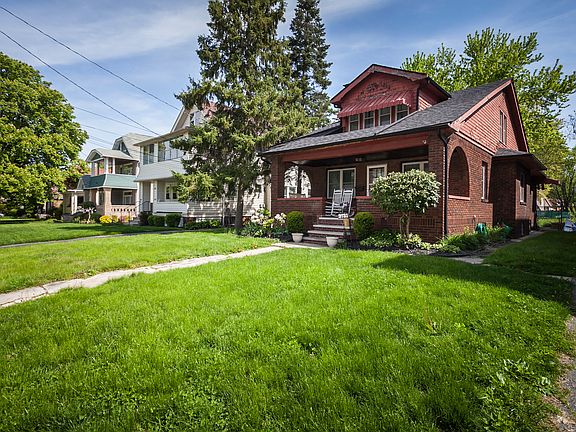 Space abounds in this home! This all brick bungalow features hardwood floors in the living room, dining room and first floor bedrooms. A full bath on the first . Fireplace is wood burning and features built in bookshelves. Dining room features built in china cabinets and a built in window seat. A large kitchen but it will need updating. The second floor living space offers the option to have a private suite with kitchenette and additional bedrooms with a full bath. Some newer windows throughout. Upgraded electrical. Central air. This home needs your creative finishing touches but can be a shining gem. Seller not making any repairs. Being sold AS IS. Great investment opportunity.