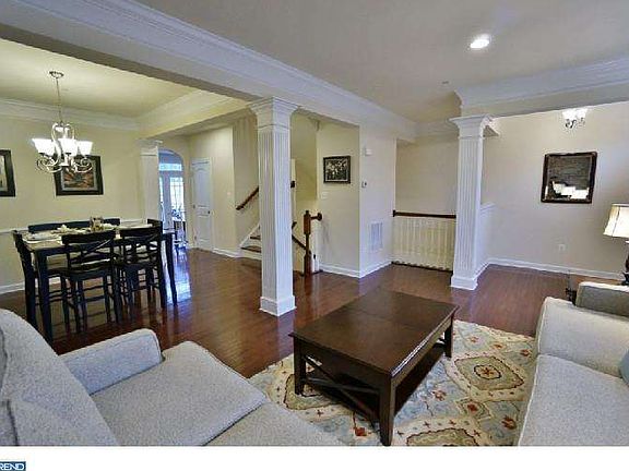 Welcome to this highly functional town home in Central Bucks School district. The home has an open living room/dining room floor plan with hardwoods throughout the main floor. Crown molding, columns, elevated ceilings, brick feature wall to enjoy. The gourmet kitchen has granite counters, top line stainless steel appliances, gas cooking, wall oven and elevated cabinets. The kitchen opens to back deck with extended grilling area and steps to the back paver patio to enjoy those summer days. The pavers lead to the garage entrance and driveway. The upper level has a large master bedroom with with tray ceiling, walk in closet and master bath. Two additional bedrooms, full hall bath and laundry room complete the upper level. The lower level has butterfly staircase with a closet on the landing and a split lower level design, could have a family room, full bath (closet is plumbed for a full bath) and a 4th bedroom. This home has a great functional lay out. Come take a look and see if this is a good fit for you.