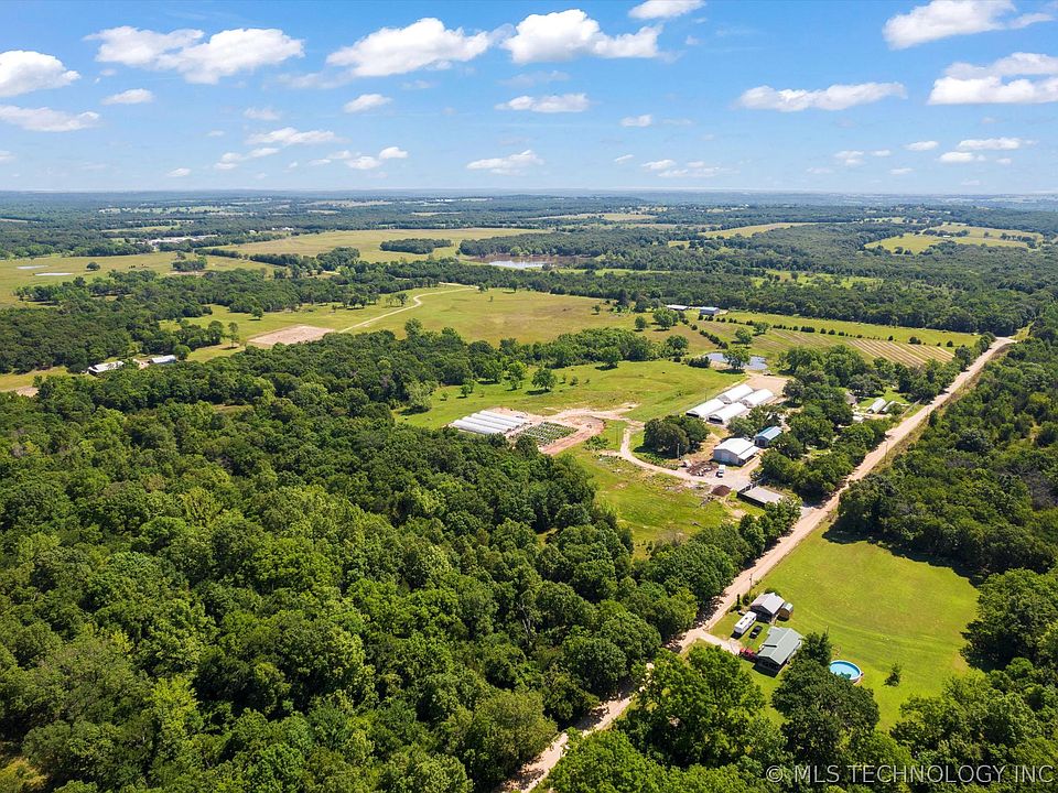 Stunning updated 4 bed/2 bath home, w/office or 5th bdrm sits on 49 fenced acres. New paint & flooring. Main bath boasts an over-sized closet, w/tub & separate shower. Property includes 4 year-round propane heated greenhouses, four seasonal greenhouses + two buildings 40' x 60' & 25' x 50' on cement pads. 3 power drops 1500 amps combined. 2 water meters, pond, above ground pool, new condenser & back deck w/car siding outdoor ceiling. Enjoy sunsets & sprawling views from your front porch oasis.