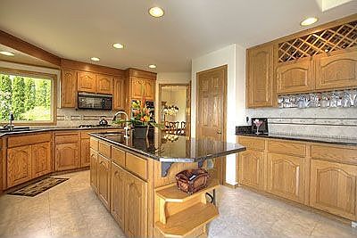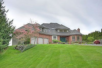 Eagle Ridge Bluff View home. Enjoy the sweeping views of the river valley, Olympic mountains and spectacular sunsets from this private home on acreage. Classic styling and quality construction such as solid oak doors, granite counters, wood and tile floors, masonry fireplaces, lots of built in cabinetry, built in vacuum security system, and sprinklers. The unfinished basement is (1675 Sq.Ft) great for storage, hobbies or future improvement. Big three car garage plus detached shop.