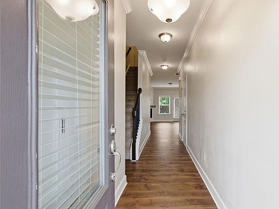Oakwood townhome in the friendly and conveniently located Reserve at OakStation.  Kitchen with white cabinets, an island, and a wainscoted dining area.  Electric fireplace in the prettily-floored great room.  Powder room on main level.  Three carpeted bedrooms, 2 tiled baths upstairs. Large soaking tub in master bath. His and hers closets in master. Laundry in second bath. One car garage at kitchen level plus dedicated parking spots. Great location near Lanier Technical College, Oakwood Parks & Recreation, easy access to I-985, shopping, dining, and less than a mile from Walmart Supercenter.
