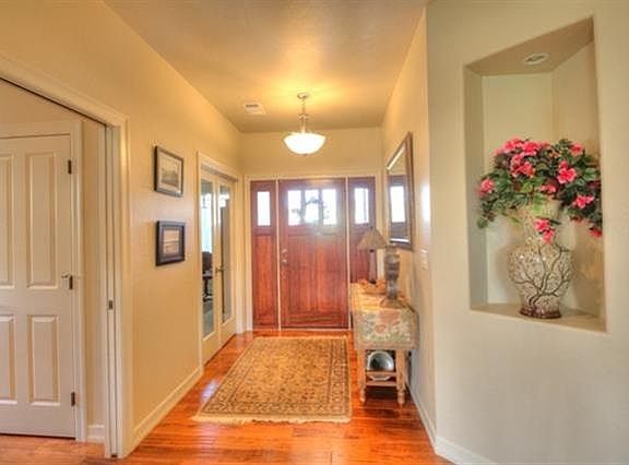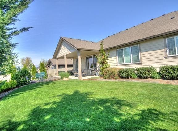 Just like new is this lovely one owner Mahar home built in 2008. This ever popular Great Room'' style home features 1954 square feet with vaulted ceilings and lovely corner gas fireplace, open dining area with a sliding door to the outside covered patio and a kitchen mom will love. Beautiful cabinetry, granite counters, stainless appliances and spacious pantry are some of the usual amenities found in a Mahar Home. Another bonus of this home is a beautiful office/dining room (now used as a music room) that can be closed off with the French doors for privacy. Beautiful plank hardwood floors, carpet and tile are found throughout this home plus a central vac and recirculating hot-water system. The yard has in-ground sprinklers and been professionally landscaped. Welcome home to this timeless Mahar classic!