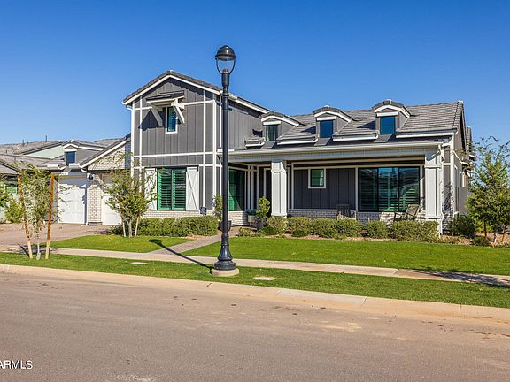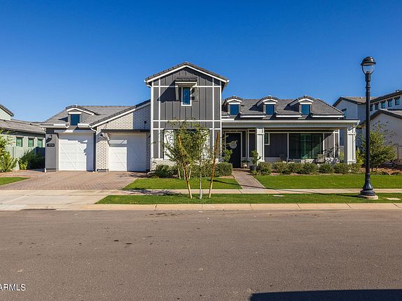 The entire home is dressed in gorgeous custom shutters, 5 1/4 baseboards, Santa Fe smooth textured walls and SW Alabaster interior paint. The three car garage has been upgraded to include upper hanging shelves and an Epoxy floor. Upgraded 16 seer AC units. A Control 4 home automation system, surround sound, plus cad 6 wiring in all the rooms. A unique feature that only two other homes in the neighborhood have is a loft in one of the five bedrooms. Also, a bathroom can be found in each bedroom to provide ample privacy and space.Your guests will also have their own half bath to use while popping by for a visit. Let's dive a little more into the owners en suite. If you love gorgeous floor to ceiling neutral chevron print tile, a stand alone tub, separate vanities, separate closets and a private throne you won't be disappointed. This is a must see home in one of the top rated neighborhoods in Gilbert, AZ.