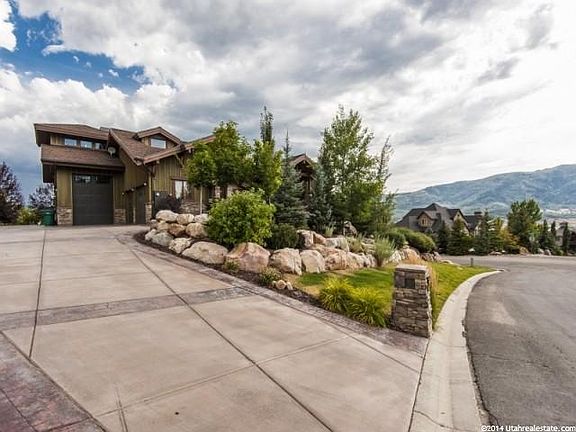 Located in the prestigious Elkhorn community, this residence offers an elegant architectural design and layout along with charming private interior and exterior living spaces. Only a short walk to the Wolf Creek Golf Course, this premier home site offers captivating dramatic views of the entire Ogden Valley including Pineview Reservoir, Wolf Mountain and Snowbasin Ski resorts. The finely crafted details of this elegant and welcoming home are impressive. Mountain charm radiates throughout this 6 bedroom, 8 bath residence that includes the following amenities: Heated driveway. Outside deck with Extra large hot tub, wood burning fireplace with gas starter, large Vermont Castings gas grill (direct gas line-no tanks), warming drawer, speakers. Large outside water feature in front of home. Outside decks coated with NuCrete. In ground trampoline. Surveillance cameras. Landscaping with rock work and landscape lighting on timer. Adjustable height permanent basketball standard. Heated RV garage. Gas lamp on front porch. Large home Generator. Incredible views of entire Ogden Valley. Large indoor water feature. Marble inlays in floor in foyer and dining area. Real wood floors on main level. Radiant heat throughout with 7 control zones. Forced heat and air throughout with three thermostats. Surround sound throughout. Realistic gas log fireplaces in family rooms upstairs and down as well as master all built to burn real wood if desired; master can be controlled with a remote. Guest suite on main floor. Entertainment room. Exercise room. Office with 360 degree views. Washer/dryer hookups in mudroom on main, master closet, and large laundry room downstairs with craft area. Sink and fridge in garage. Downstairs kitchenette with fridge, built in microwave, dishwasher, garbage disposal, double sink with instant hot water. Downstairs family room with slate floor, wired for rear speakers and built in TV. TV in both family room and master included in sale. Massive custom carved mantle in main family room. Kitchen with Dacor gas convection oven and range, warming drawer, vented hood with custom copper cover, built in microwave and ice maker, built in Dacor coffee maker with fresh ground coffee by the cup at the push of a button. Several large storage areas. Truly, one of the premier homes in all of Ogden Valley.