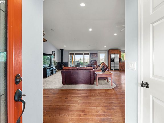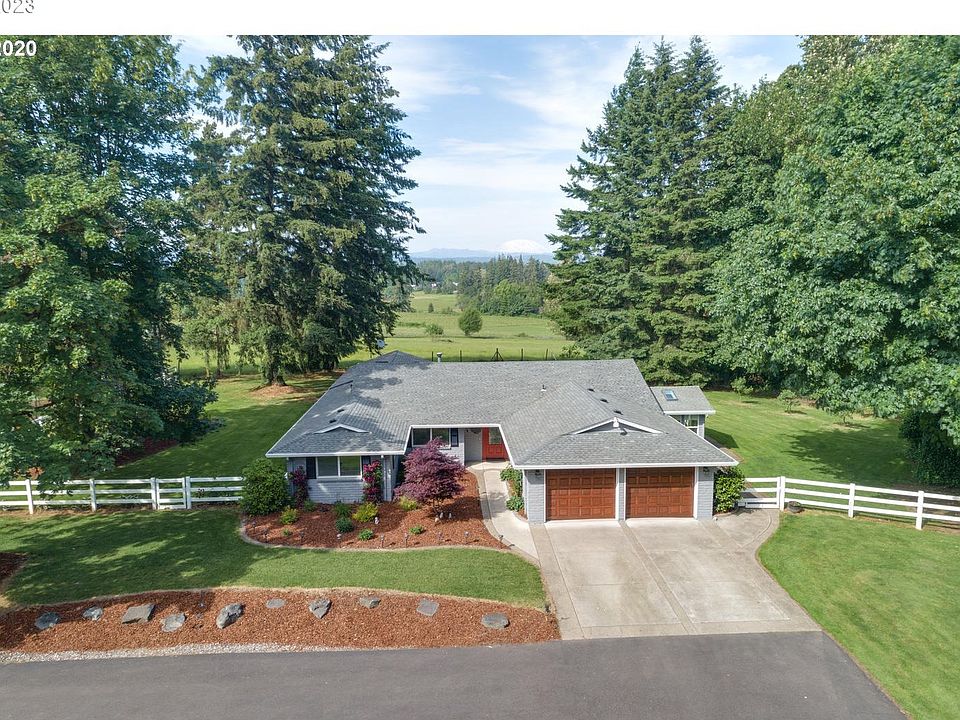 Close in Ridgefield acreage with no freeway noise! This remodeled ranch has an open concept with 4bd 2.5ba. Huge primary suite with unobstructed views of St. Helens and Bethany Winery vineyards. A 60' x 32' outbuilding includes a shop, room for stalls, workshop, and an office/game room offering a deck overlooking the garden and view. Property is completely fenced and cross-fenced. The newly covered back patio will create the perfect opportunity to enjoy NW living at its best!